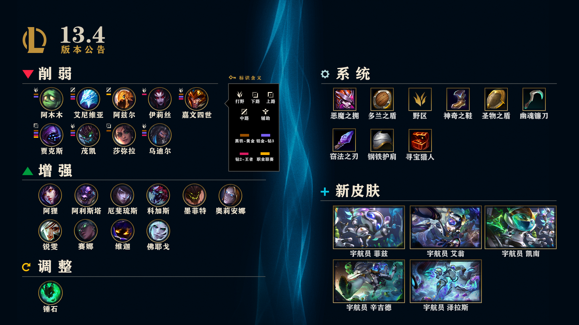 注:国服的公告基于国服更新的实际版本数值,Riot游戏设计团队如在版本内对平衡性进行调整,国服运营团队将根据更新筹备进度发布版本内更新公告。后续可能基于实际运行效果进行优化,且不同机器配置下效果可能不同。